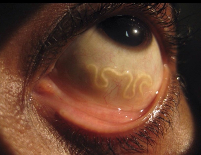 A human eye infected with a roundworm parasite. credit: MEDizzy.
