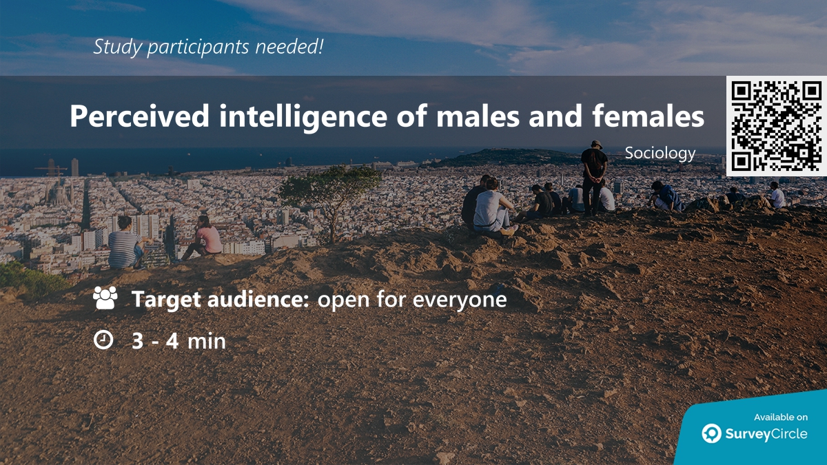 Participants needed for online survey! Topic: "Perceived intelligence of males and females" https://www.surveycircle.com/en/surveys/?cr=at#f0bdf2ff5d2d … via
