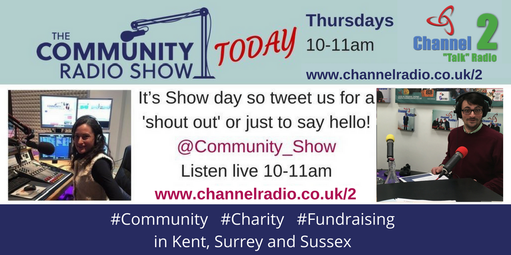 #CommunityShow LIVE@ChannelRadio2 http://www.channelradio.co.uk/2 - TWEET us about your#Community#Charity and#Fundraising events in#Kent#Surrey#Sussex pic.twitter.com/SWNe5fxgC7