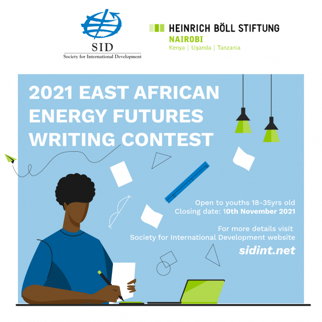 @HBSNairobi and@SIDEastAfrica invites youths 18 to 35 to submit essays on emerging trends, best practices & solutions on#sustainableenergy Deadline: 10th Nov 21 pic.twitter.com/0UVKPi93Yi