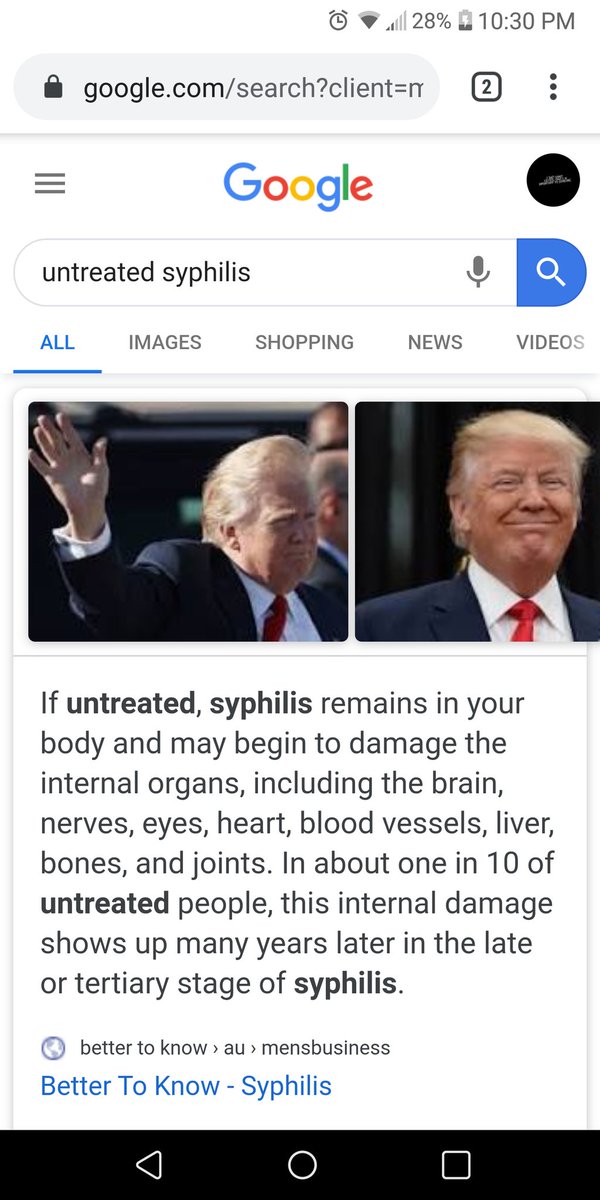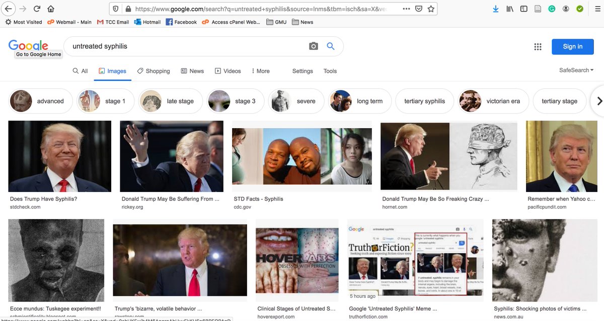 Somehow images of Trump are trending with a Google image search of "untreated syphilis".
