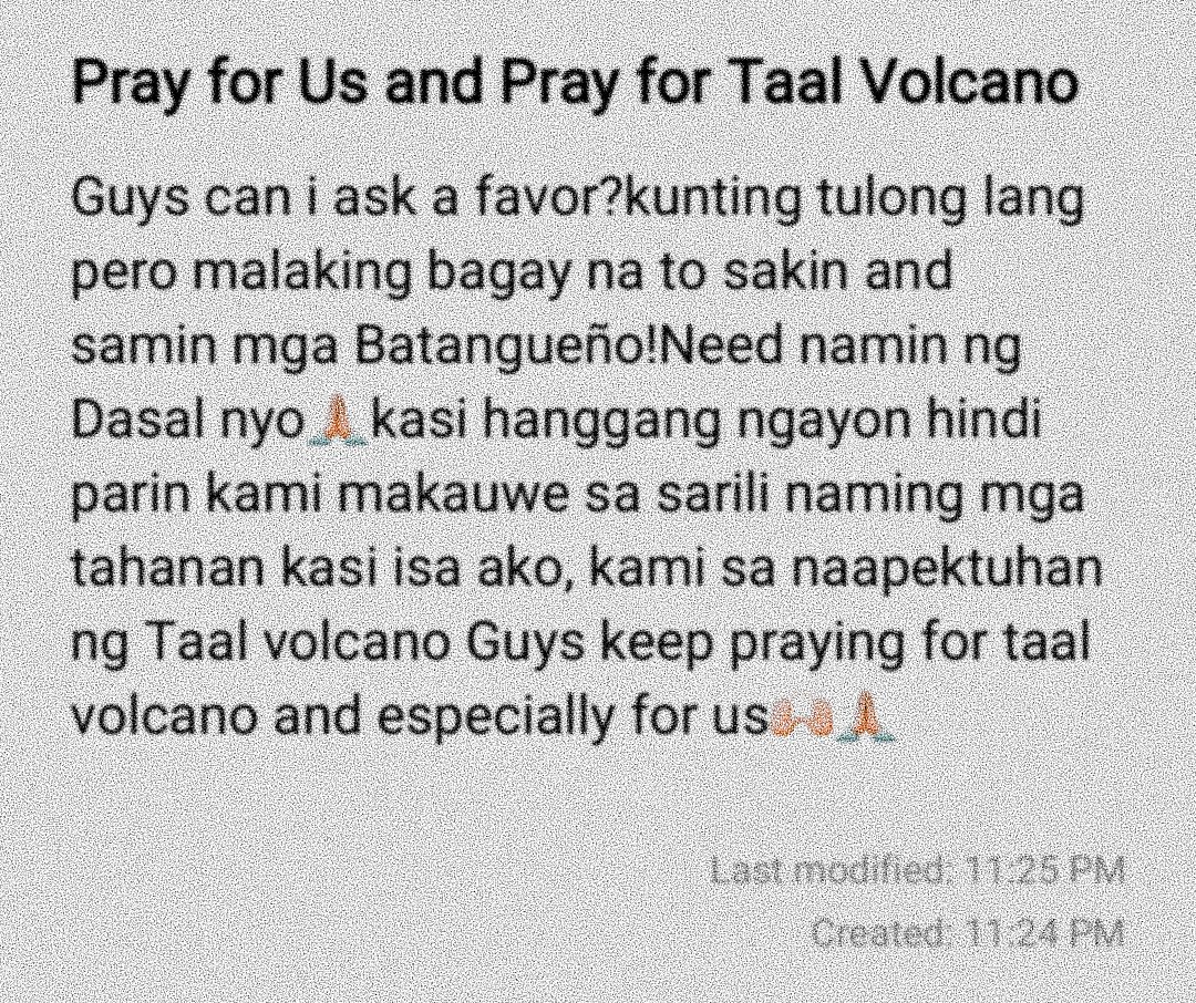 Guys makikihingi naman po ng Dasal nyo para saming mga naapektuhan ng Taal Volcano
