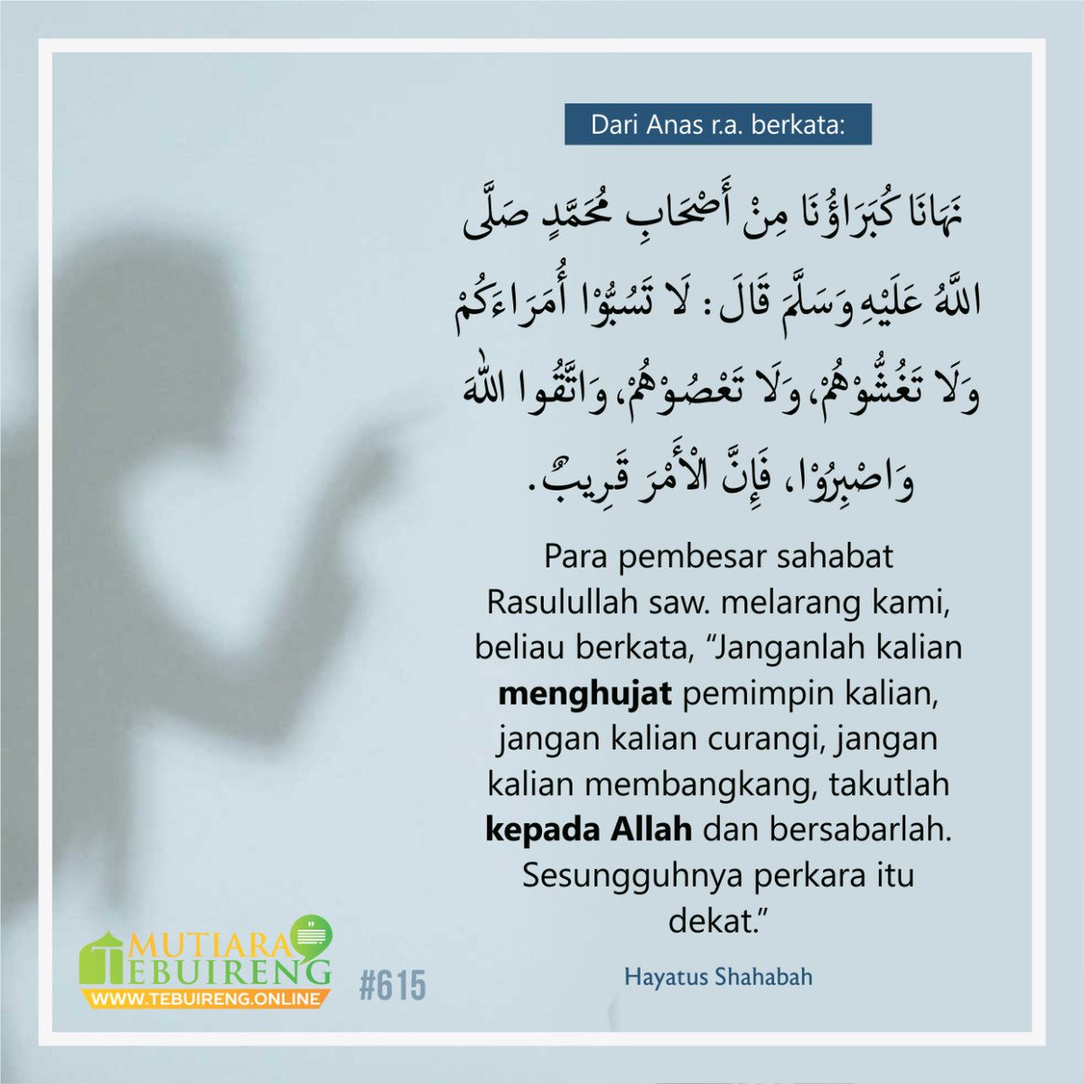 Taatilah para pemimpin di antara kita dan do'akan mereka dengan kebaikan. Janganlah menghujatnya.