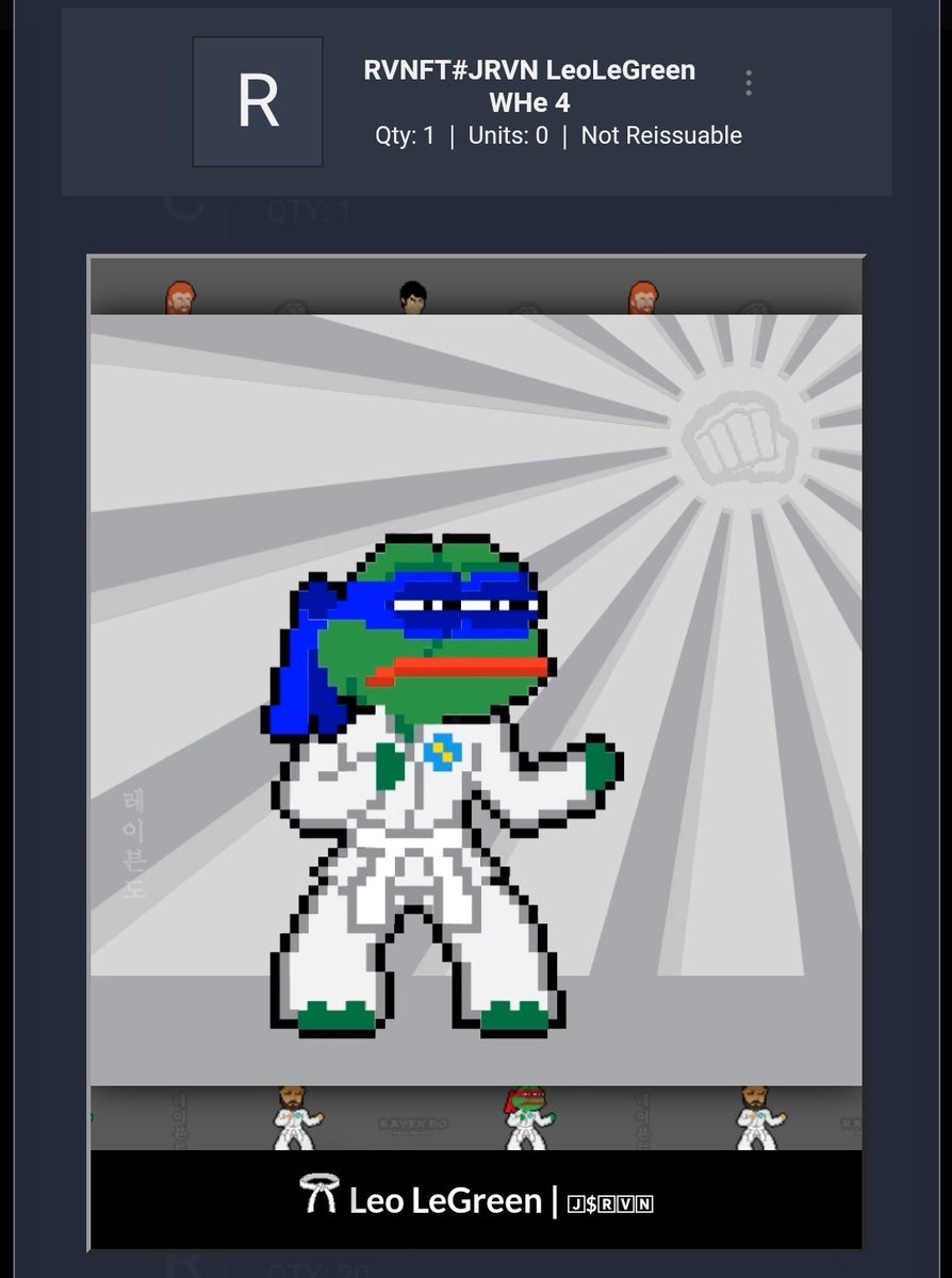 @johnnykarstadt Raven-Do#nft on@RVNFT_ART today.#Ravencoin$RVN#karate#Frog#digitalasset#Taekwondo pic.twitter.com/73GiOL8Gqg