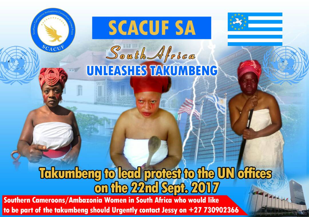 #Takumbeng are out on 9/22/2017 @ all@UN offices#UNGA72 to demand#RestorationNow#FreeSouthernCameroonspic.twitter.com/BzGmXWyAeO