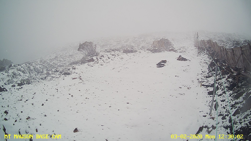 First snowfall for 2020 today Monday 3 February. Mt Field National Park.