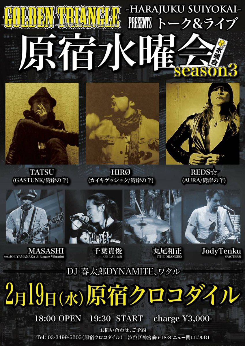 #原宿水曜会#HIRO#TATSU#REDS with#MASASHI#千葉貴俊#丸尾和正#Jodytenku open 18:00 start 19:30 charge ¥3.000 *ご予約承っております! 03-3499-5205pic.twitter.com/LCslrs3CUJ