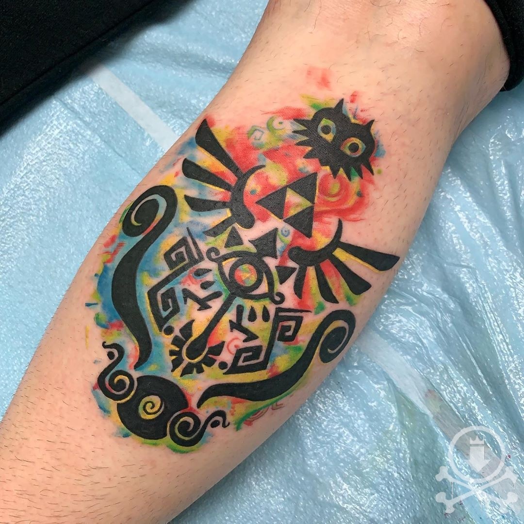 Watercolor style Legend of Zelda tattoo by Mario Rivera Jr at our Deptford, NJ shop