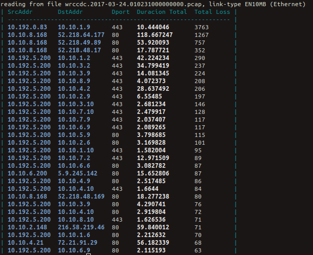 #tcpdump tcpdump -nn -reb.pcap -w - | argus -r - -AZJmRU 10240 -w - | ra -c'\t' -L0 -r - -s stime saddr daddr sport dport dur state proto bytes synack pkts rate loss suser:2000 duser:2000 -- tcp | .... S_payload: "$14"\n"" D_payload: "$15"\n"}' ... pic.twitter.com/irANRllRFQ