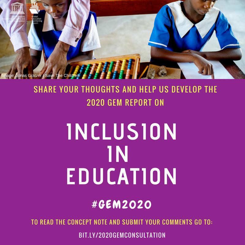 #teacher, parent or student with an interest in education, inclusion and development? Share your thoughts on the topic of inclusion and education to help develop the 2020@GEMReport#GEM2020 http://Bit.ly/2020gemconsultation …pic.twitter.com/mJdAa7fRXj