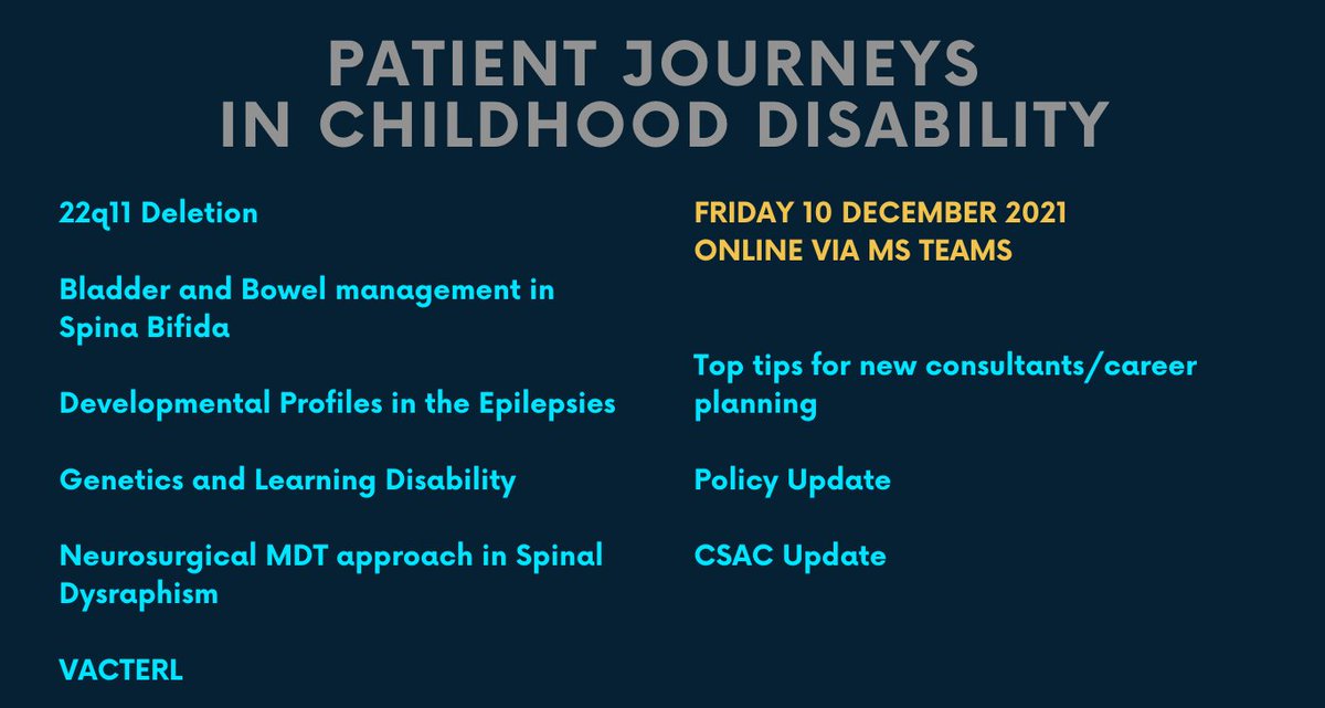 Join us on Fri 10 Dec (via MS Teams) for our annual trainees' meeting! Aimed at trainees interested in neurodisability but open to all professions. To view full programme and to book visit https://www.bacdis.org.uk/events/Trainees2021 …pic.twitter.com/1XDUwrwwmV