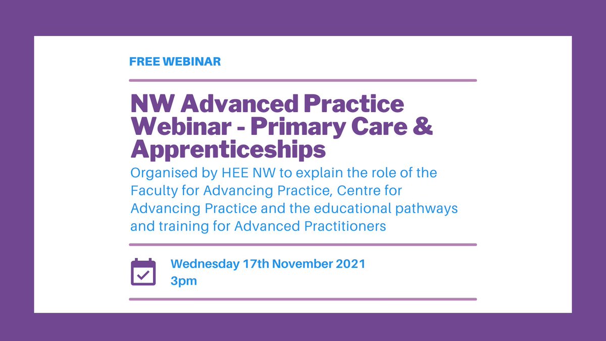 NW Advanced Practice Webinar - Primary Care & Apprenticeships, organised by