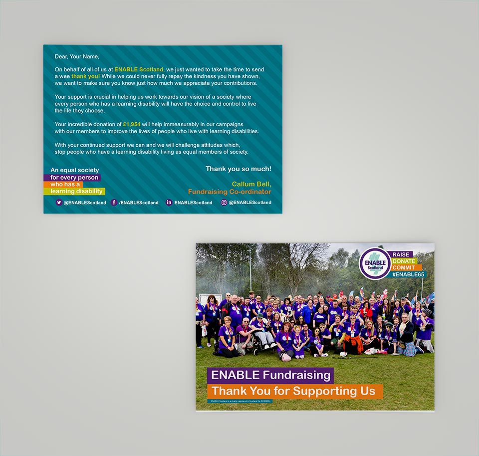 #A6postcard design for#branding and#marketing a#Thankyoucard for ENABLE Scotland's Fundraising on thanking the participants who raised funds for the@thekiltwalkpic.twitter.com/XnSqQuZ9aJ