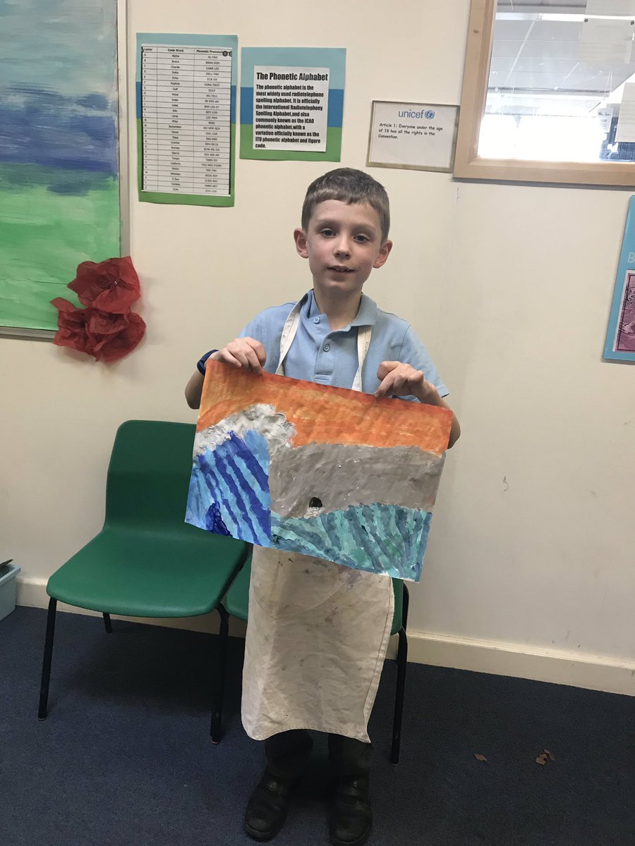 For their topic on Natural Diasters, P7 painted Tsunami waves using inspiration from a Japanese artist’s work