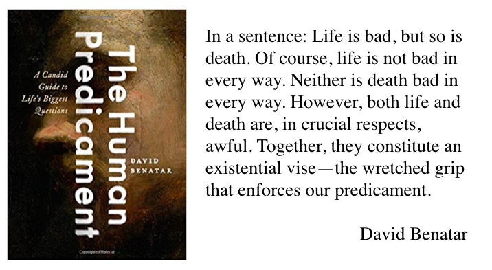 Book of the week: “The Human Predicament” by David Benatar. Hold on to your butts!