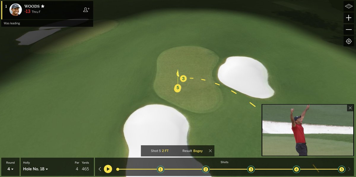 And, just about a week ago right now, it happened. It really, truly happened. Tiger Woods won his fifth green jacket and 15th major. (Change graphic at top left from “was leading” to “winner.”)