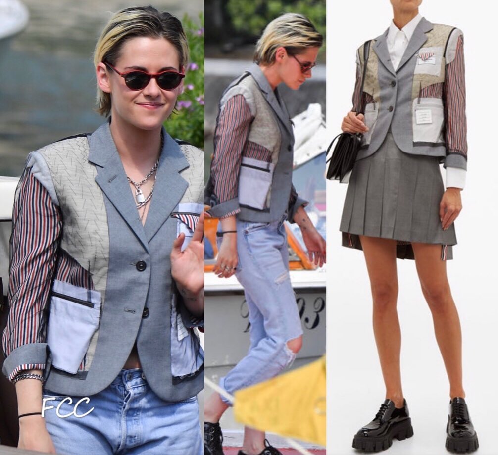 #KristenStewart in the#thombrowneny blazer with jeans for outing in Venice. A simply chic and casual outfit .#SEBERG#venice76 via : IG FCCdailypic.twitter.com/84dU5CaBKL