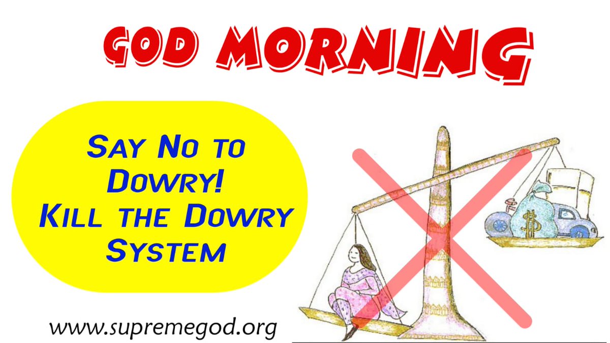 #GodMorningThursday SAY NO TO DOWRY! KILL THE DOWRY SYSTEM. "Kindly Visit SANT RAMPAL JI MAHARAJ Youtube Channel for more information about way of worship."#ThursdayMorning#ThursdayFeeling pic.twitter.com/iw36fsVjRV