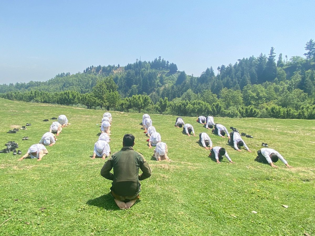 #IndianArmy organized a#Yoga Workshop for the students to instill the importance & benefits of the yoga.#IndianArmyPeoplesArmy#NayaKashmir#Trending#BadaltaKashmir#thursdaymorning#JammuAndKashmir#Kashmirpic.twitter.com/NoJBOTXYwb