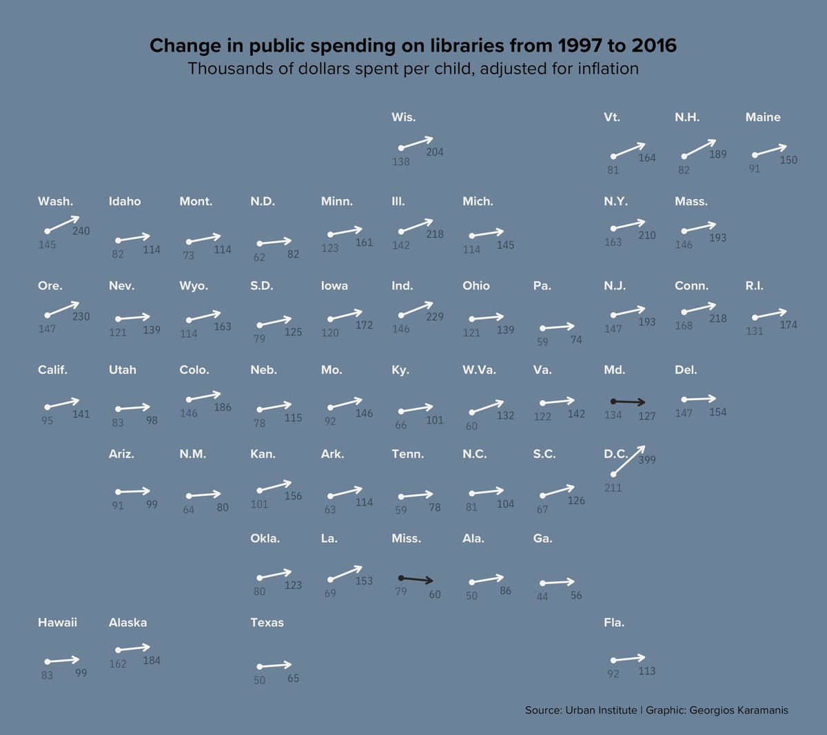 Change in public spending on libraries for this week’s