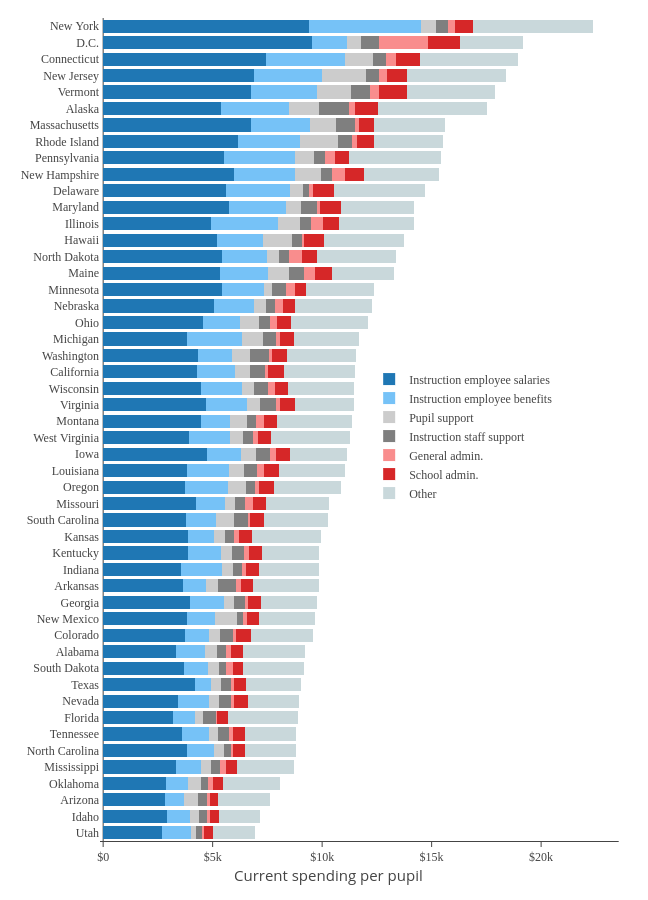 #TidyTuesday: A Marimekko plot of state spending on libraries#RStats Normally I feel iffy about these types of charts... but I think they work when the areas of the bars are meaningful (in this case, they show total spending) Code: https://bit.ly/2H58NA3 pic.twitter.com/QCX6GF8QIq