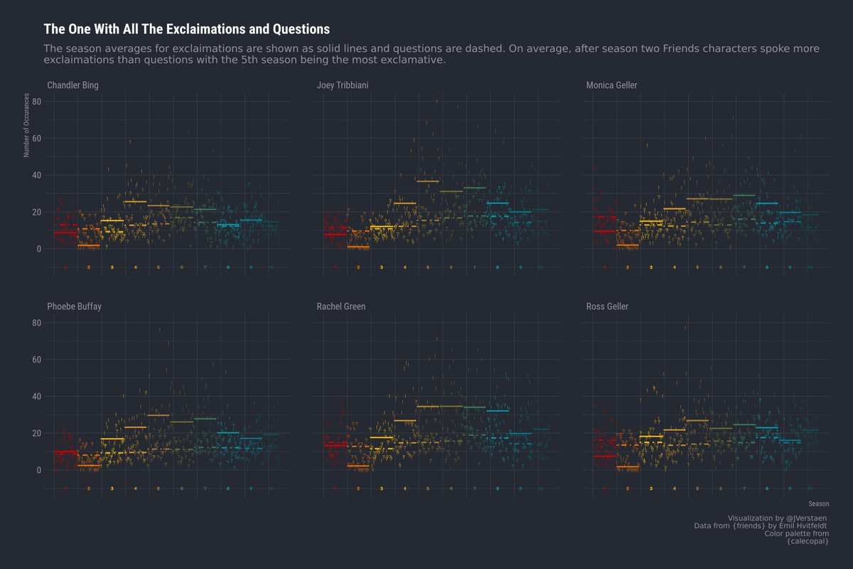 #TidyTuesday for Friends. Had lots of fun finding out who's the most exclamative and inquisitive on this smokey California morning! pic.twitter.com/mkXclXeZeV