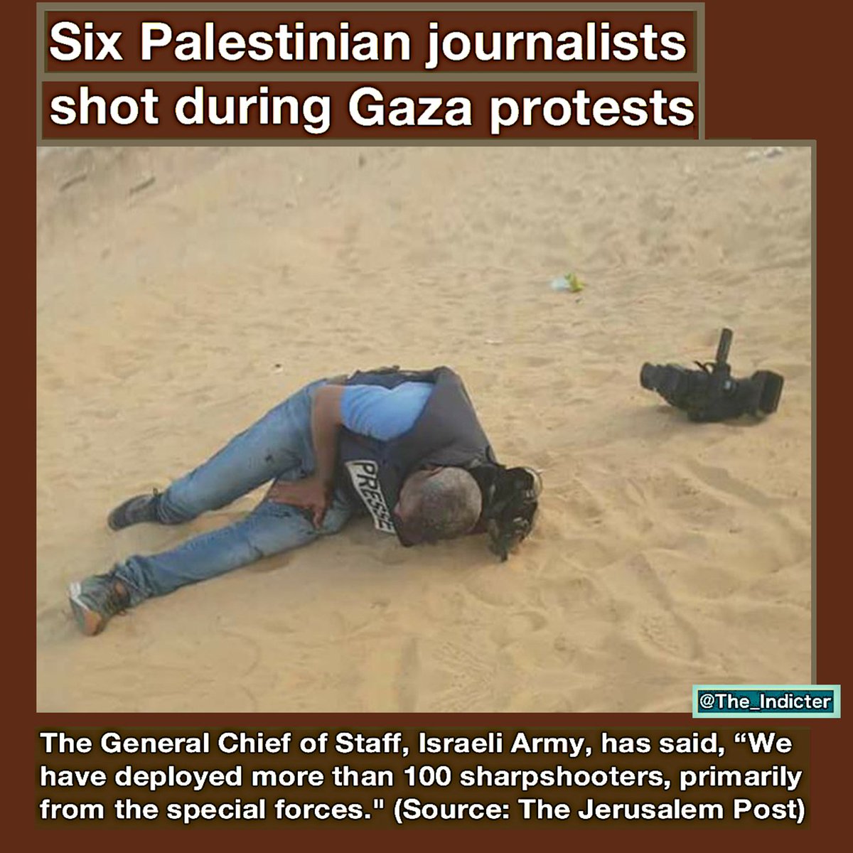 #PALESTINE Journalist Union: All reporters shot by the Israel Army in#Gaza, did wear clear identification as journalists https://www.i24news.tv/en/news/international/middle-east/171686-180406-union-says-six-palestinian-journalists-shot-by-israel-during-gaza-protests …#TimesofIsrael:At least 9 were killed & 491 wounded in second mass border protest in eight days, totaling 31 Palestinian killed#svpolpic.twitter.com/iREHylFwSg