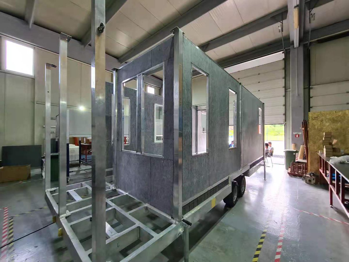 With the first story walls installed onto the trailer, our flagship model is finally starting to look like the real thing. Pretty amazing, isn't it? We sure think so