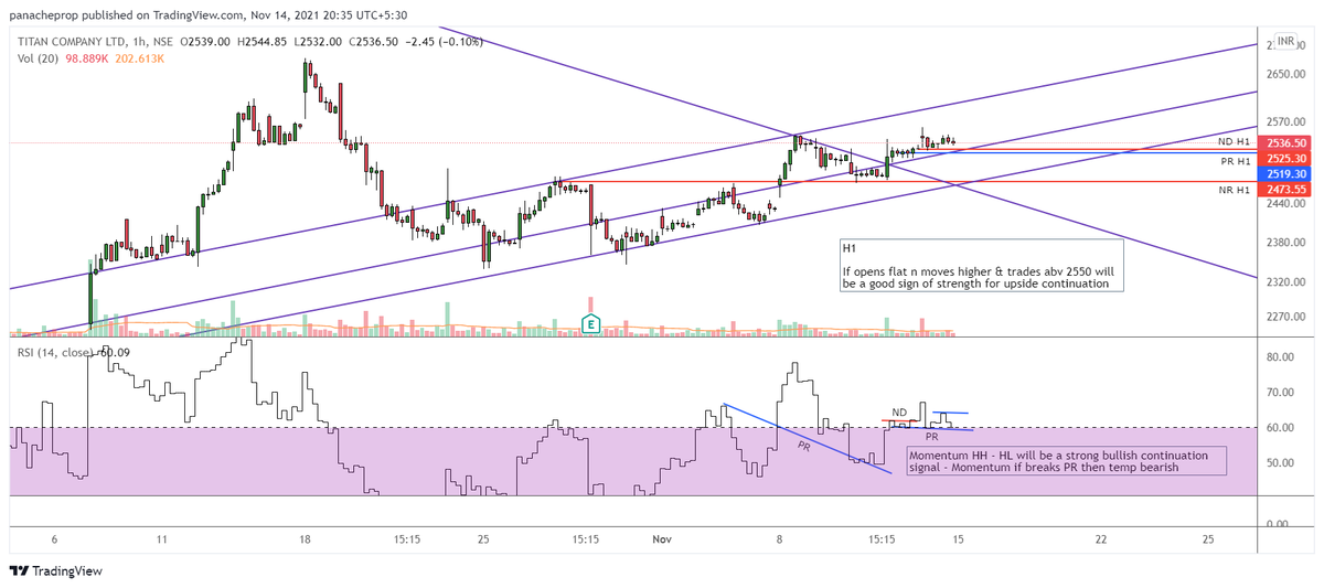#titan - Despite overall mkt bullish & most stocks rallying - this stock struggled to move higher as expected on 12th - now it shud continue higher - ideally shud open flat & move upside - If gaps up or down then ignore. Breakdown of PR will turn it temp bearish. pic.twitter.com/KNdO57RYxP