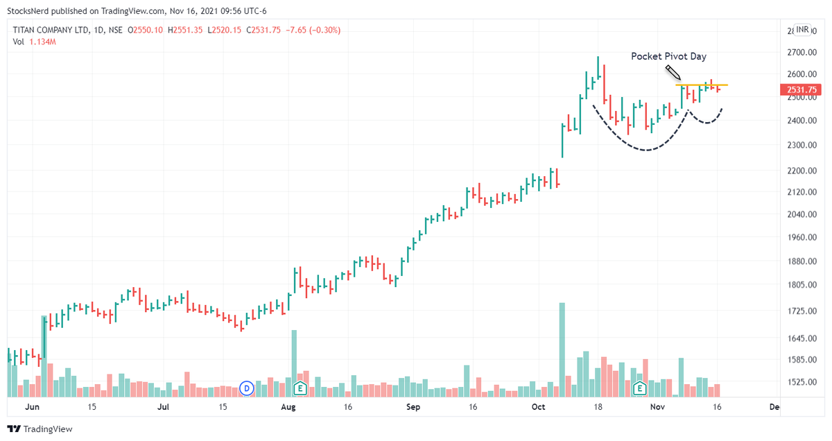 #TITAN is consolidating nicely. Holding well after Pocket Pivot signal on 8 Nov'21. Excellent growth in Earnings & Sales on YoY in the last 3 quarters. EPS Strength: 88 Price Strength: 70 Buyer Demand: A- Group Rank: 30 Tracking it! pic.twitter.com/jCmFdJLtr6