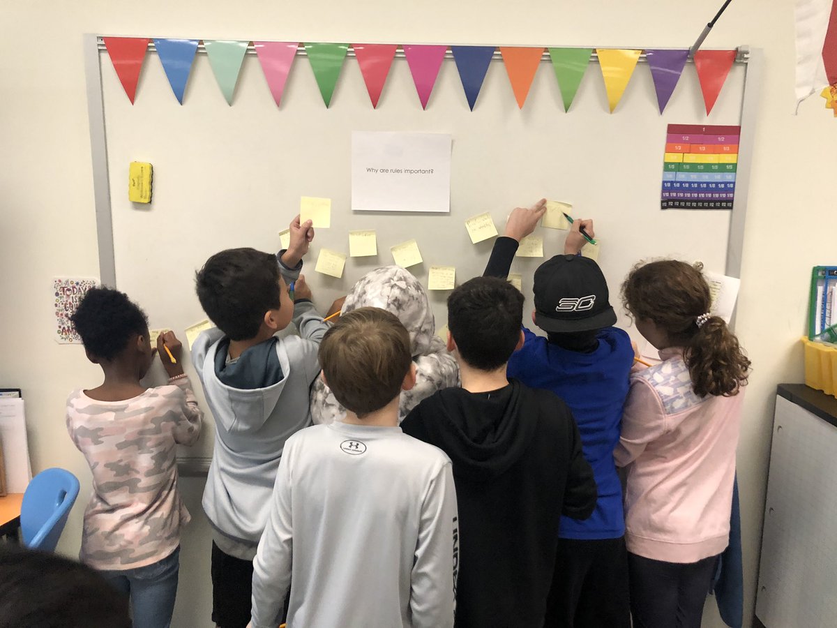 ALL THE ENGAGEMENT TODAY! Ss worked in small + large fires this morning. We used a chip protocol to make sure EVERY voice was heard. Ss participated in a gallery walk to start our civics + government unit.