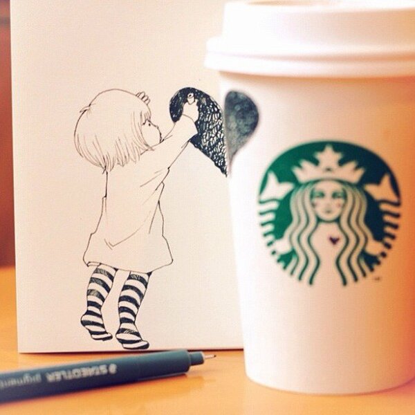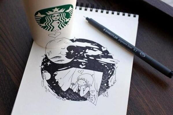 #arte in un bicchiere (di@Starbucks): ✓blocco da disegno ✓penna@STAEMars ✓tazze "a portar via" ✓#TomokoShintani ➺http://wp.me/p3hl2d-10L pic.twitter.com/kfS3bJlxvK