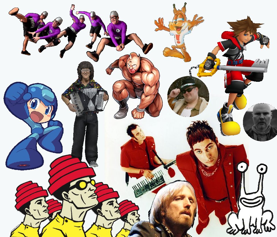#TheAquabats#Bubsy#KingdomHearts#SmashingPumpkins#MegaMan#WeirdAlYankovic#Kinnikuman#BluesTraveler#Devo#JoyElectric#TomPetty#DanielJohnston#YourPlaylistAsAnImagepic.twitter.com/VxxNRATU44