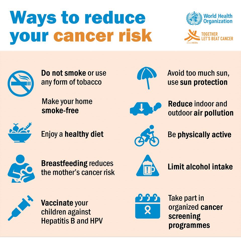 Ways to reduce your cancer risk. Reduce saturated fats and increase fresh fruit and vegetable consumption
