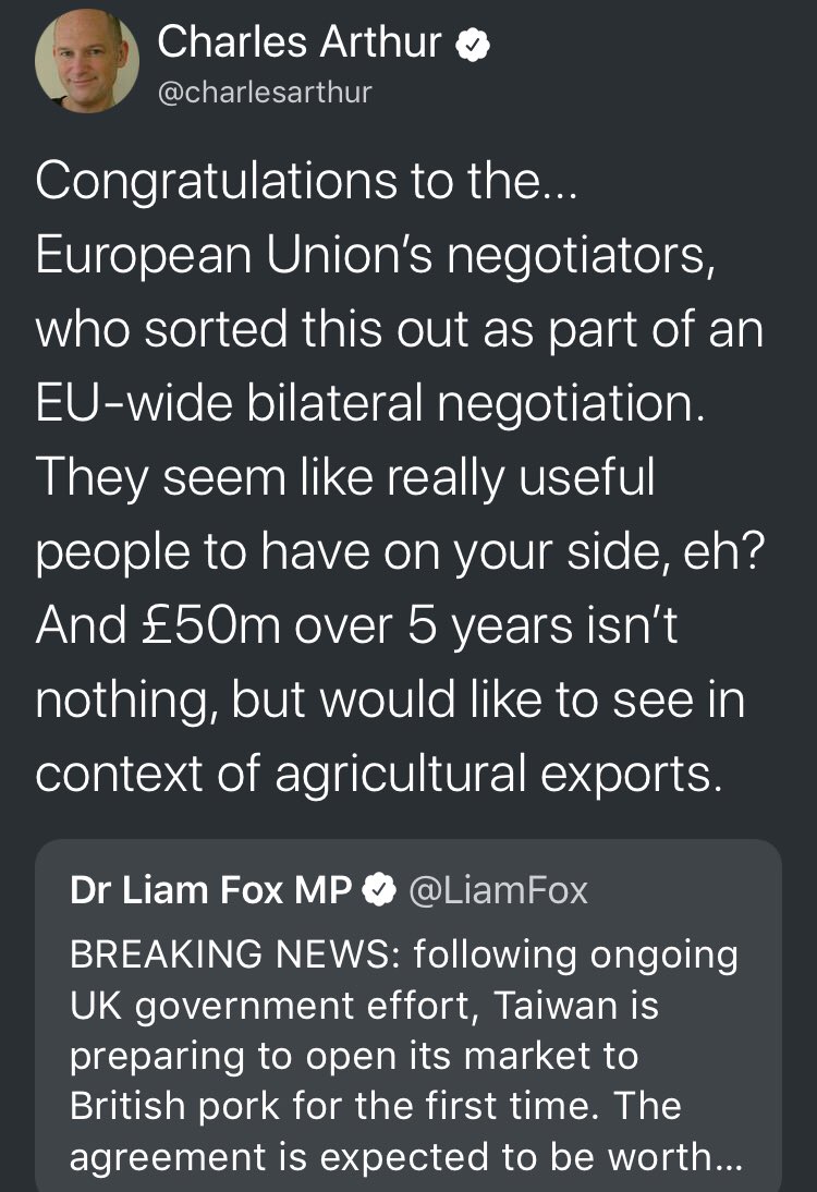 It shows how desperate he is & how bad things will be post #Brexit#DistortionOfTruth -5yr deal 4 £50m#FBPE It was an#EU negotiated deal, Look at@fascinatorfun tweet