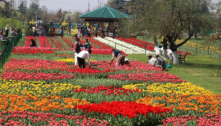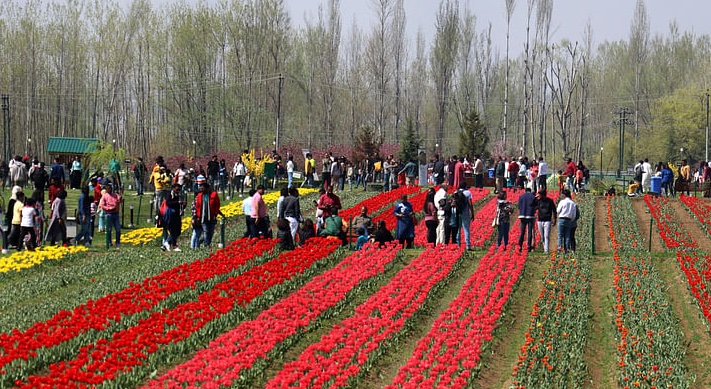 #TulipGarden , housing over one million tulips, was opened to the public on Wednesday. The garden was swarmed by visitors who wanted to spend their time amid a riot of colors.#Kashmir#Srinagar#Tourists pic.twitter.com/sWFOwtnIV9