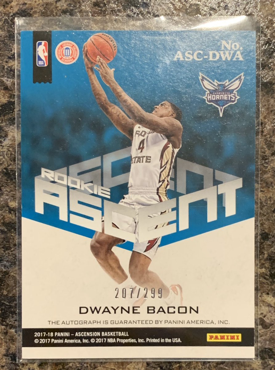 $4.50 shipped PWE. PayPal FF only. -Dwayne Bacon 2017-2018 Ascension Rookie Ascent auto RC 207/299.