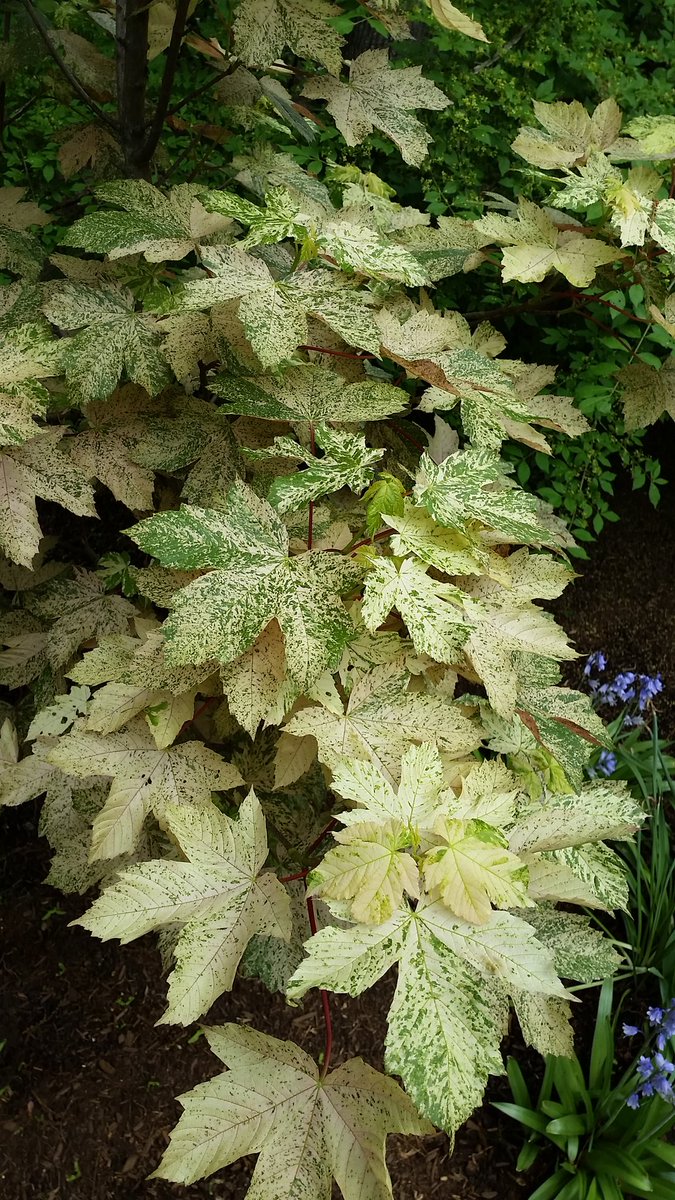 Acer pseudoplatanus 'Esk Sunset', a variegated sycamore maple can brighten a shady spot in the garden.