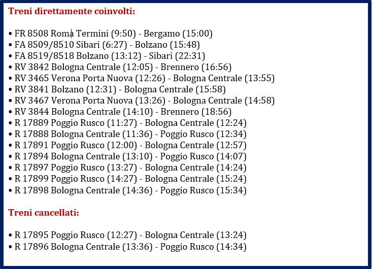 Traffico rallentato per guasto alla linea tra San Felice sul Panaro e Crevalcore