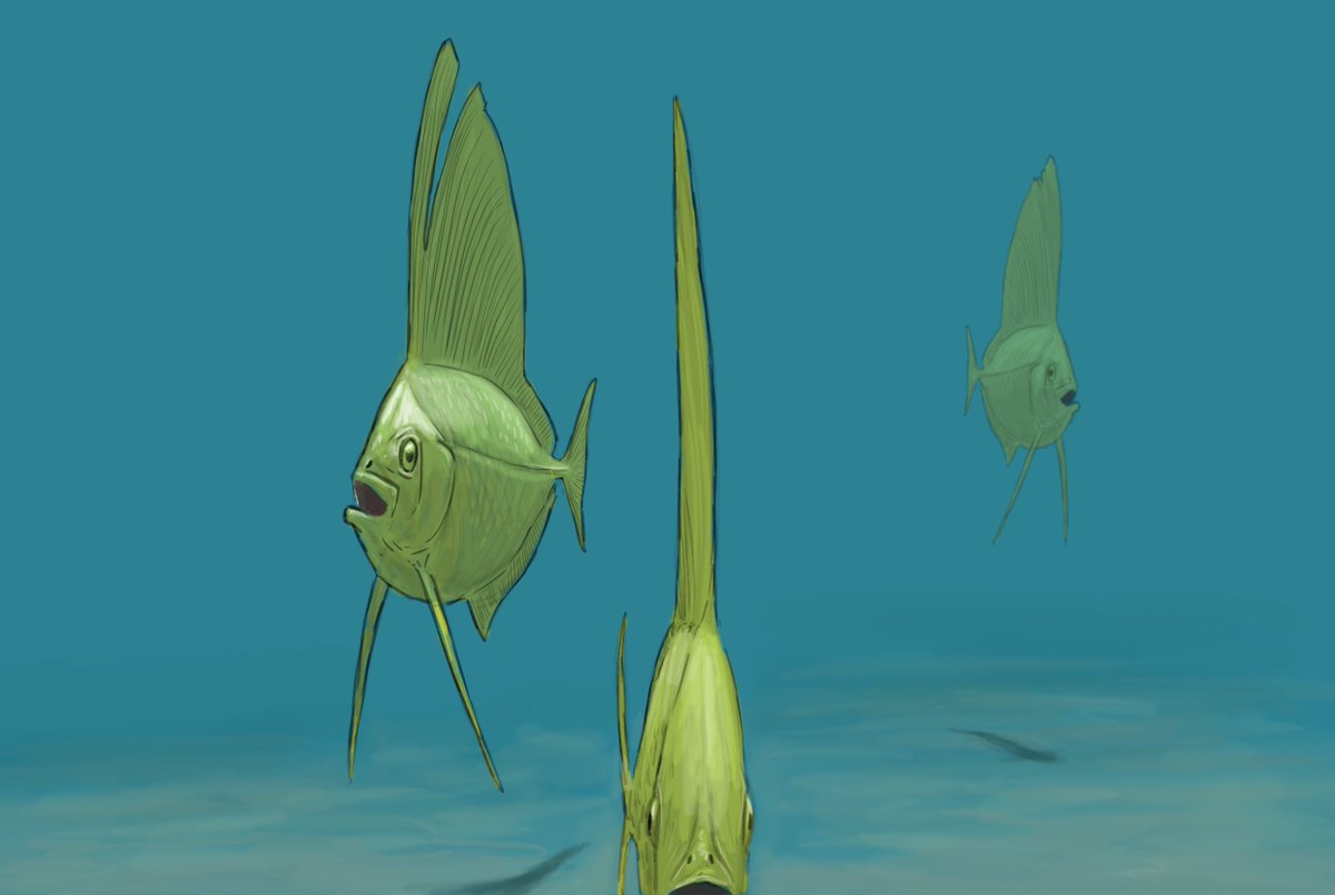 #hypuronector is flushing color to his tail in the hopes of attracting a female.#paleoart#paleontology#triassic pic.twitter.com/cisE62Ik0U