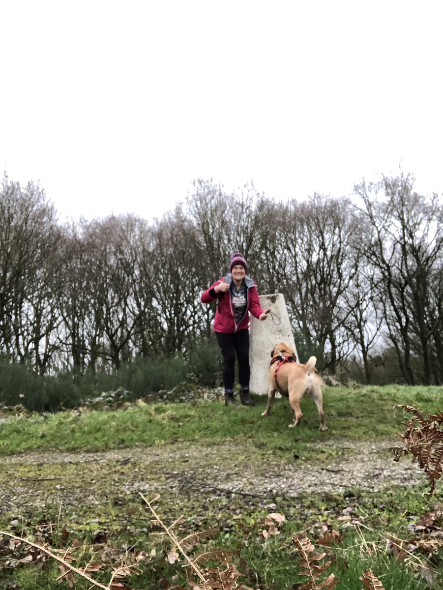 Miss Nova bagged her first trig this morning! Foggy, rainy but amazing morning out hiking the Roaches