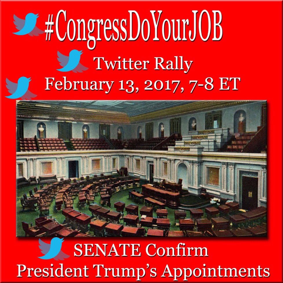 #Twitter#Rally#CongressDoYourJOB Feb.13 2017 7-8 pm ET GET TWEETS READY