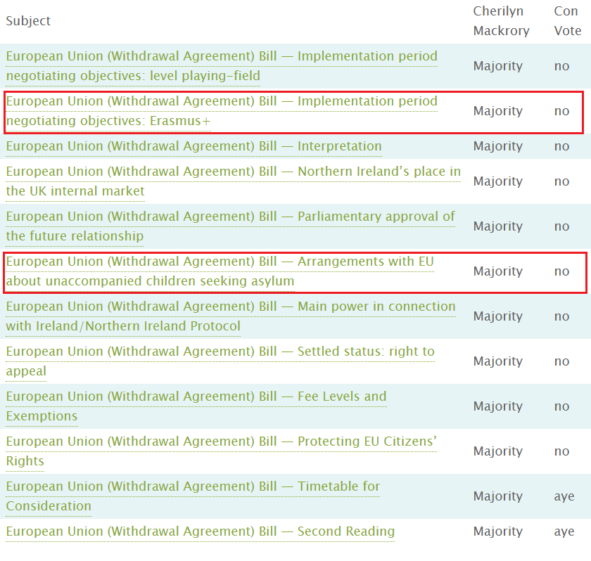 @thisischerilyn, the new MP for#Truro &#Falmouth, voting against amendments designed to protect child refugees & to ensure UK students can continue to benefit from our membership of the Erasmus programme.pic.twitter.com/4S8QrUQiBD