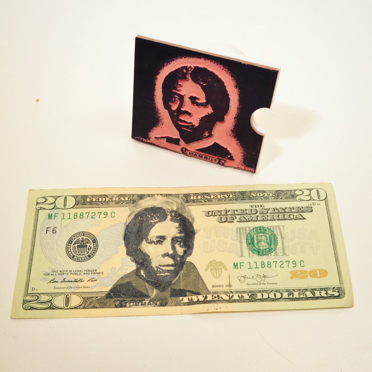 My first Tubman is going into circulation! Somehow, my placement made her look a little like Abraham Lincoln.