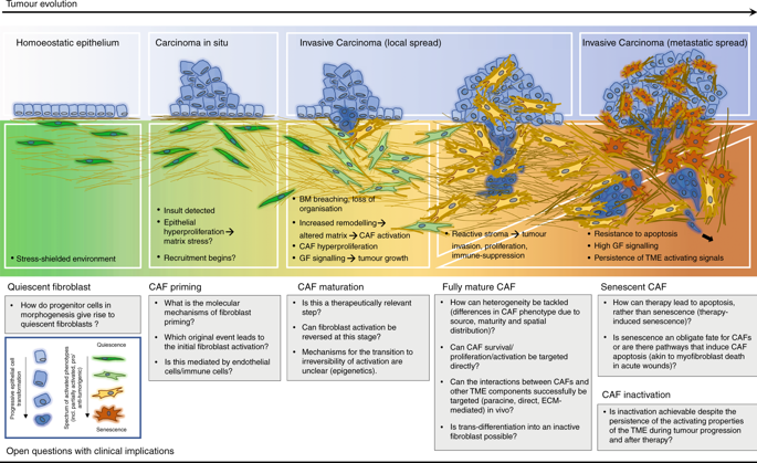 New Review on the cancer-associated fibroblast life cycle during tumour evolution by