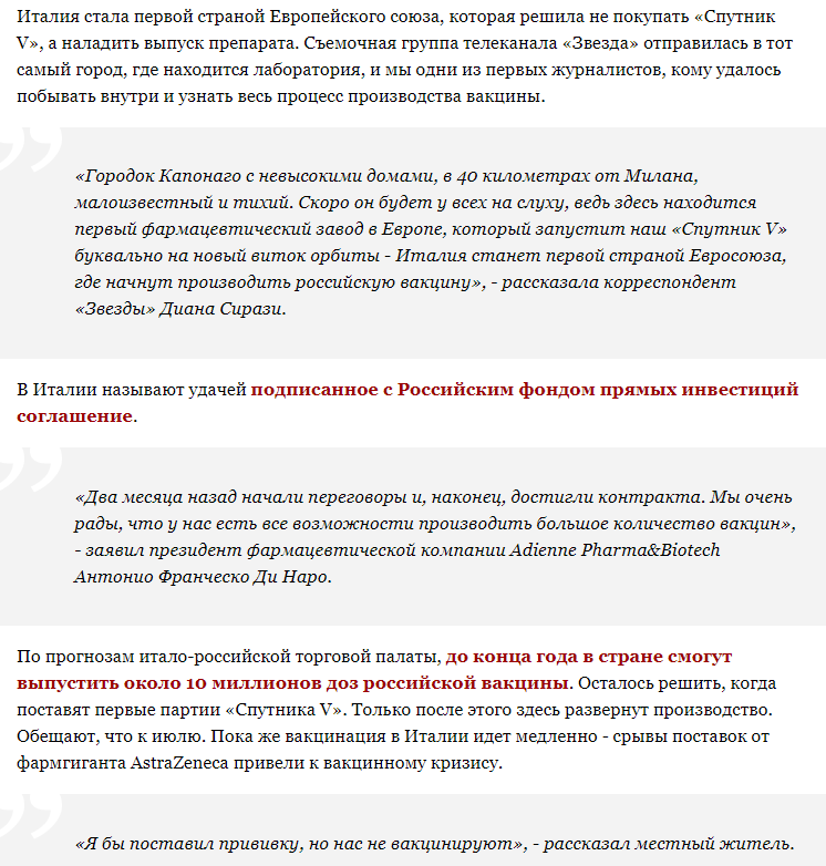 #Russia,#tvzvezda.ru,#news,#Italy: «Из России с любовью»: как#итальянские#специалисты#готовятся к#запуску#производства#SputnikV#первыми! в#Европе https://buff.ly/3vfGmUx pic.twitter.com/J3B0TH4xM0