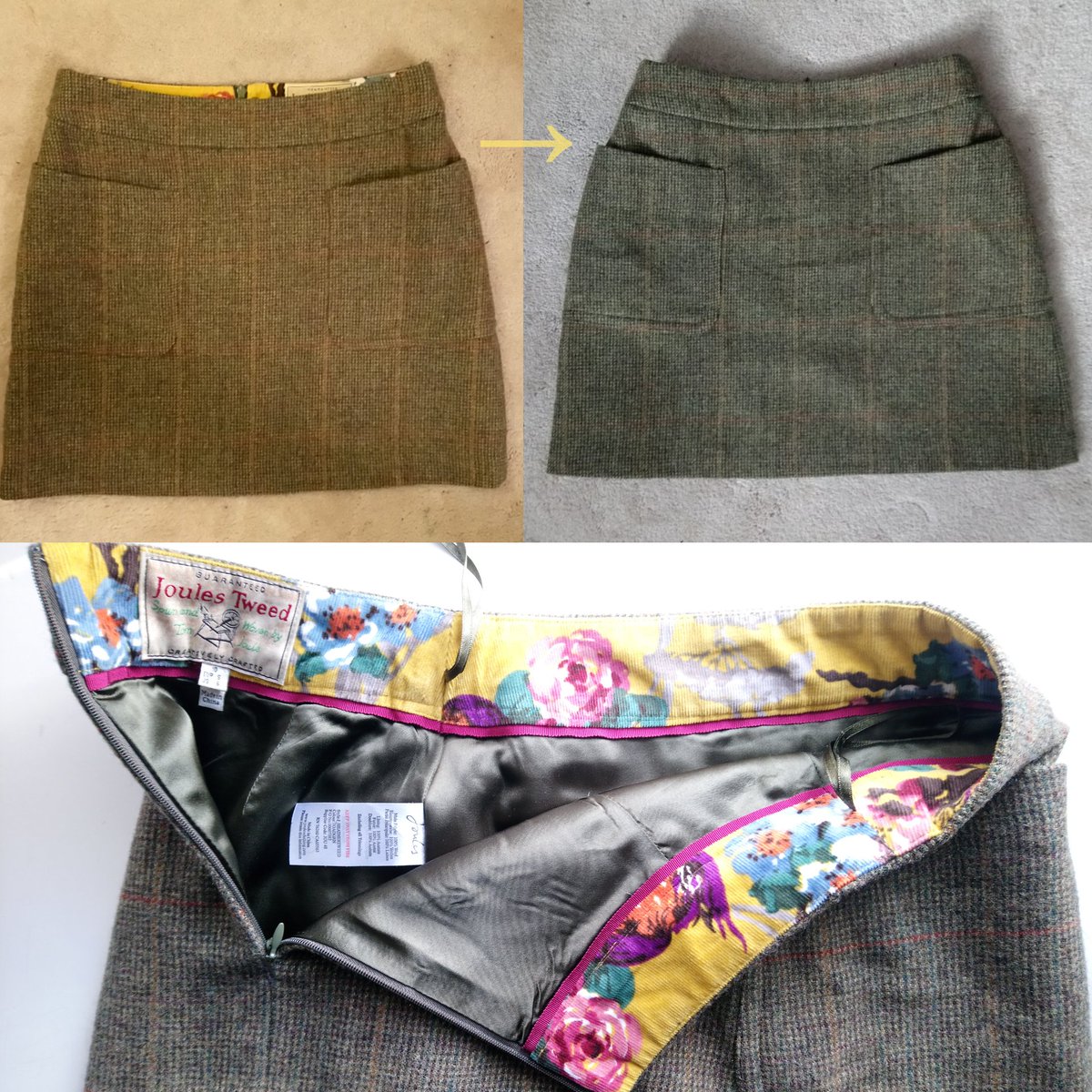 I took 3cm in at the waist from this twee mini skirt but all the details are intact.