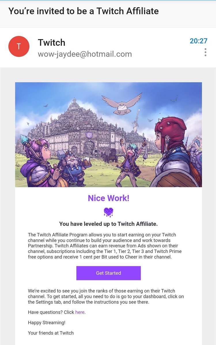 absolutely speechless, after many many amazing hours of streaming I got this message from Twitch