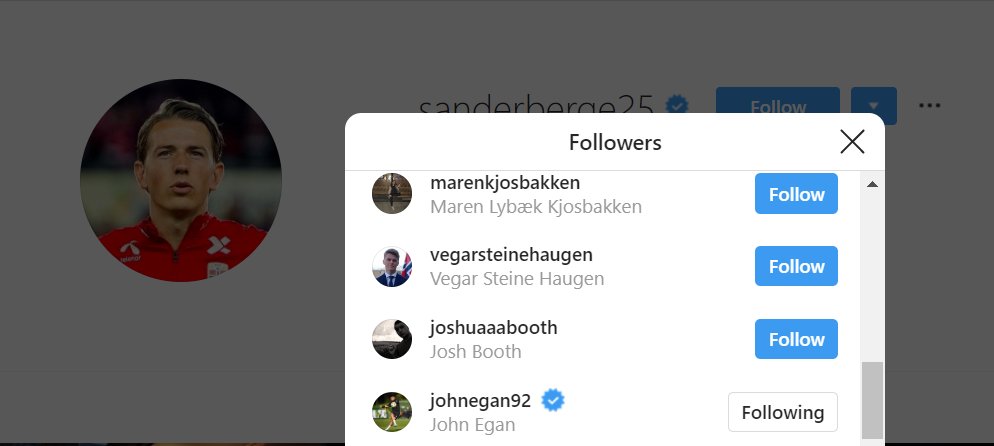 A certain Mr John Egan has started following Sander Berge's official Instagram account.