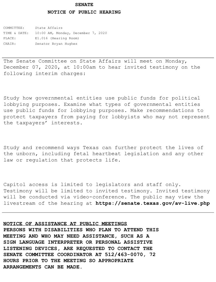 #txlege Find more info and how to watch here https://senate.texas.gov/events.php -